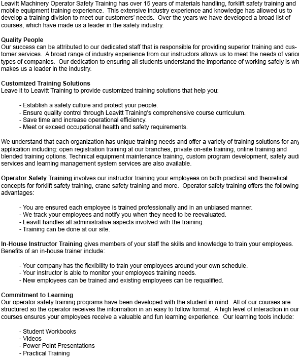 With such a great selection of possibilities for certification, you are certain to discover one that meets your requirements. Whether you are searching for somebody to come instruct at your place of work or would prefer to train at our facility, we can accommodate all your requests. Our capacity to tailor our instruction methods to your equipment is what sets us apart from our competition.